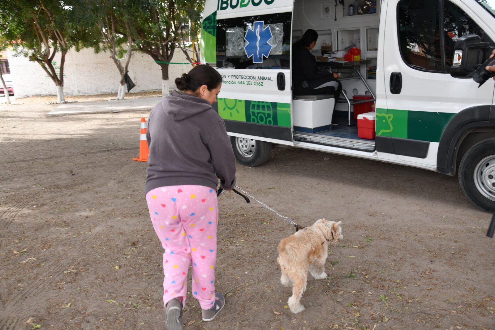 Con una estrategia permanente de prevención y cercanía con las familias, el Ayuntamiento de Soledad de Graciano Sánchez continúa con las atenciones de la Unidad Médica Veterinaria Ambudog, que brinda consulta, vacunación antirrábica y desparasitación gratuita en distintas colonias del municipio, a fin de fortalecer la salud pública y el bienestar animal, siguiendo la guía de trabajo cercano a las familias que ha instruido el Alcalde, Juan Manuel Navarro Muñiz.
