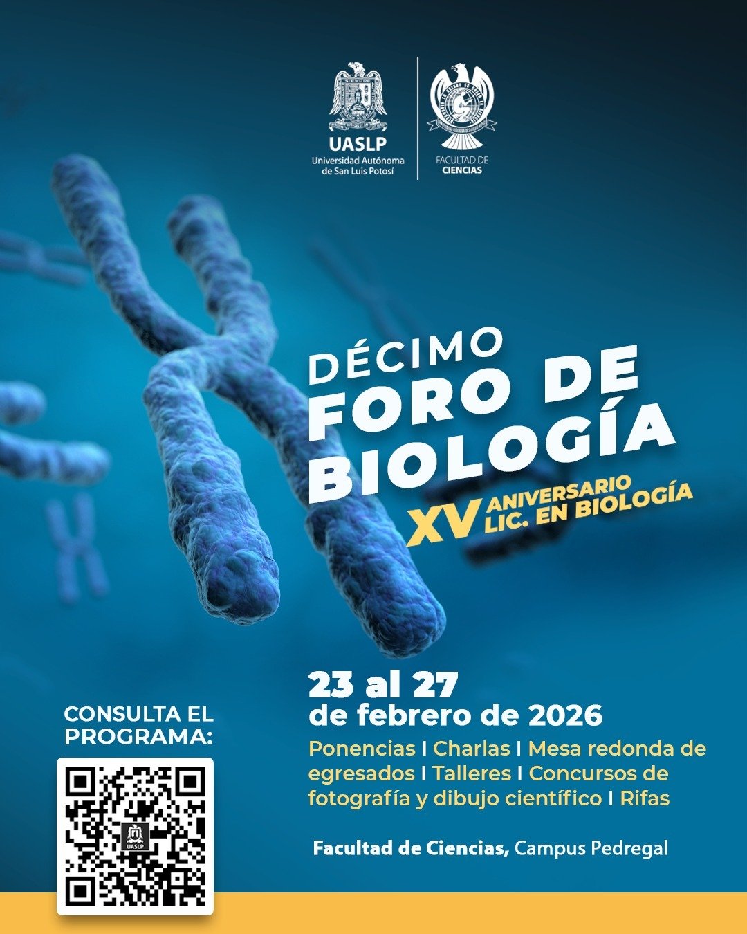 La Universidad Autónoma de San Luis Potosí, a través de la Facultad de Ciencias, inauguró el X Foro de Biología en el marco del XV aniversario de la Licenciatura en Biología, y culminará el próximo viernes 27 de febrero de 2026. El encuentro reunirá a especialistas en diversas áreas para dialogar sobre investigación, conservación, docencia y aplicación del conocimiento biológico.
