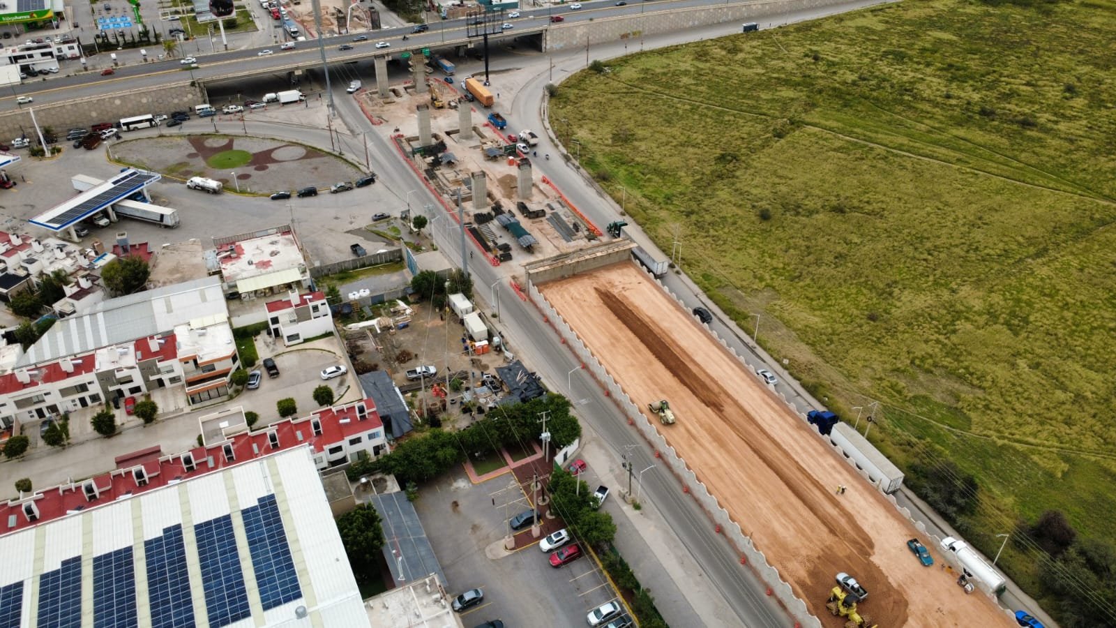 La Secretaría de Desarrollo Urbano, Vivienda y Obras Públicas (Seduvop), informó que se agilizan los trabajos del mega puente vehicular en Circuito Potosí y el cruce con el bulevar Valle de los Fantasmas, que actualmente tiene un avance superior de 43 por ciento.