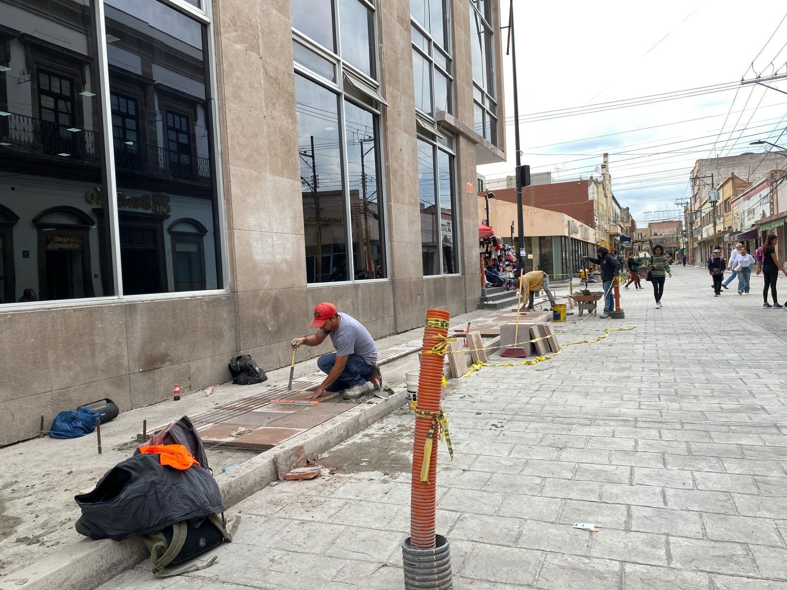 Avanza rehabilitación integral de Julián de los Reyes; se amplía guía podotáctil para mejorar accesibilidad en el Centro Histórico