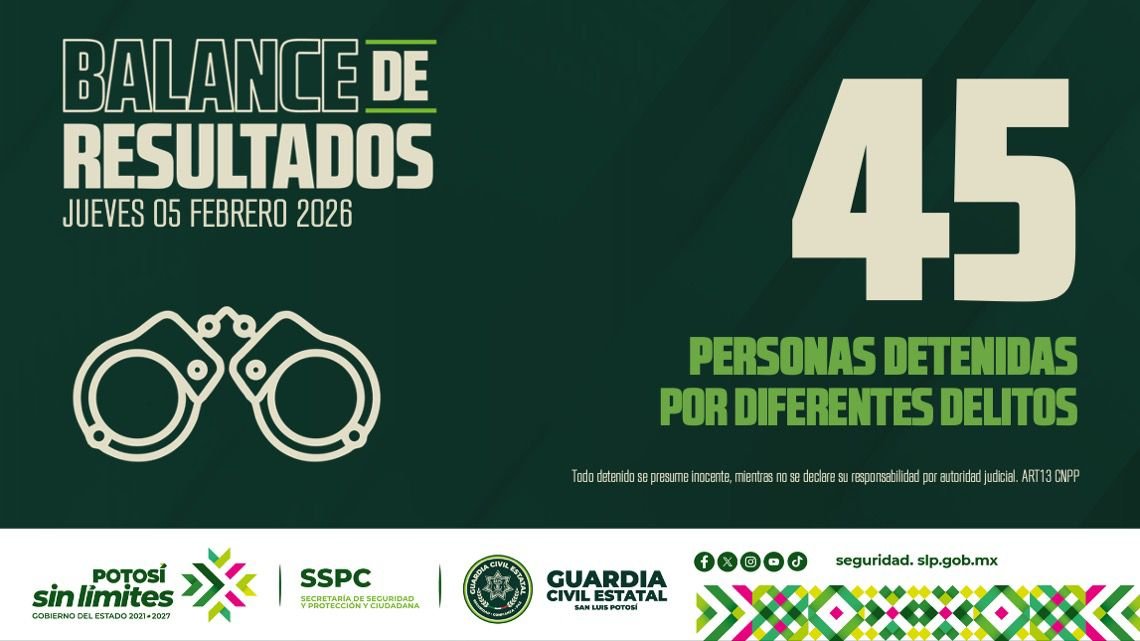Acciones contundentes para continuar sin límites en la construcción del orden y tranquilidad de la entidad, derivaron en la detención de 45 personas en las últimas 24 horas por su presunto involucramiento en diferentes hechos delictivos.