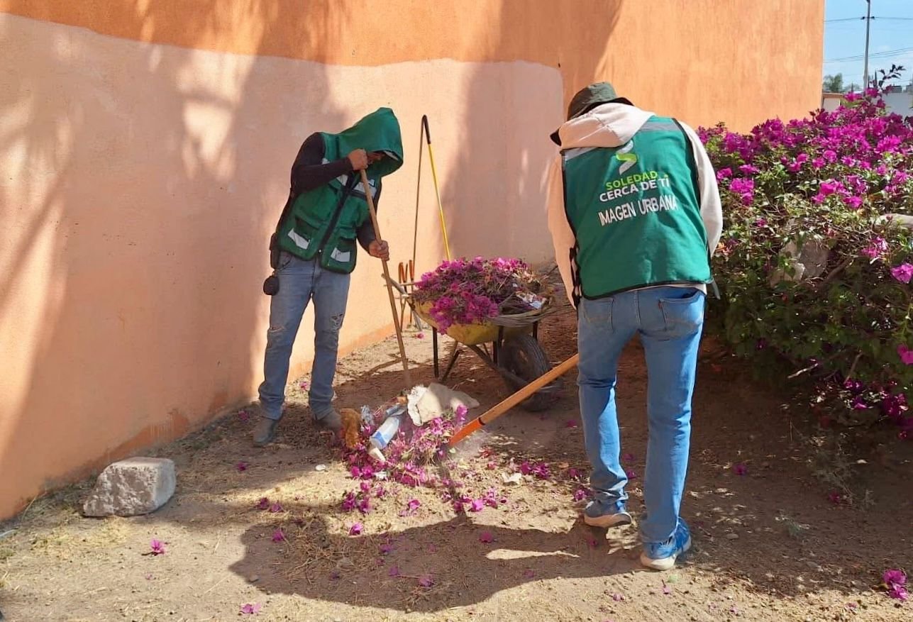 Desplegando operativos permanentes, cumpliendo y garantizando que las familias cuenten con entornos seguros, limpios y dignos, el Ayuntamiento de Soledad de Graciano Sánchez, a través de la Dirección de Servicios Municipales, mantiene las labores de mantenimiento, limpieza e imagen urbana en diversos sectores del municipio, lo cual también corresponde a la encomienda del Alcalde Juan Manuel, Navarro Muñiz, de trabajar de manera coordinada para no descuidar ninguna zona del territorio.