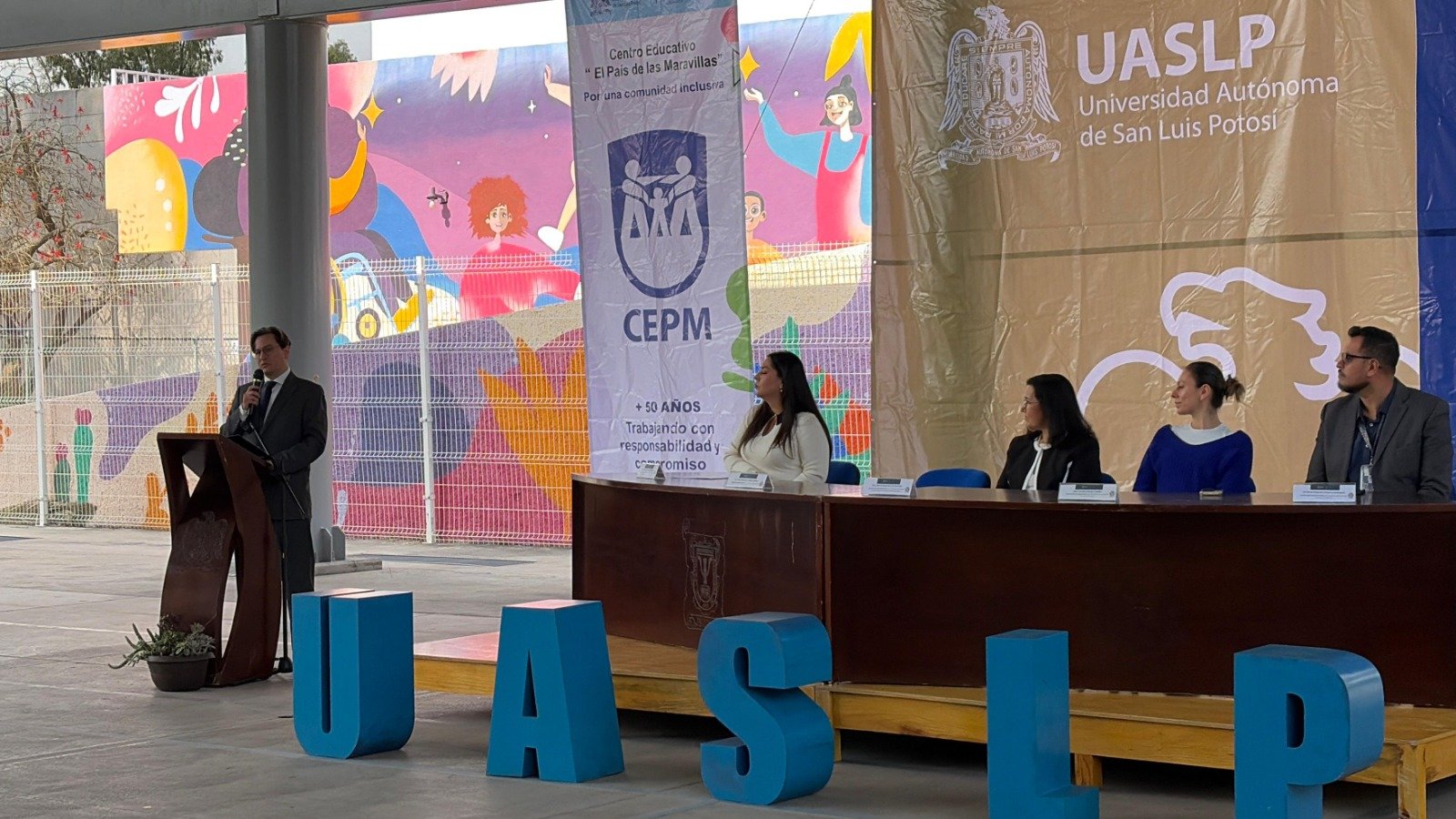 La Facultad de Psicología de la Universidad Autónoma de San Luis Potosí (UASLP) conmemoró el 50 aniversario del Centro Educativo “El País de las Maravillas”, un espacio dedicado a la formación profesional y al bienestar psicológico y educativo de la comunidad. A la ceremonia asistieron autoridades universitarias, estudiantes, padres de familia, usuarios y representantes de distintas facultades, quienes se sumaron a la celebración de medio siglo de trabajo enfocado en la educación, la inclusión y el servicio social.