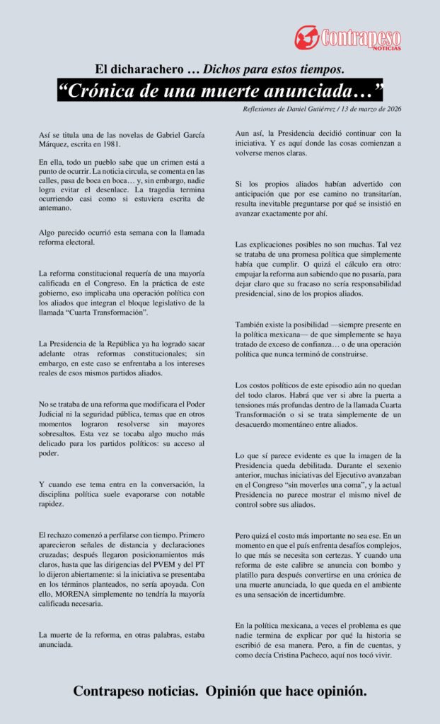 Reflexiones de Daniel Gutiérrez / 13 de marzo de 2026