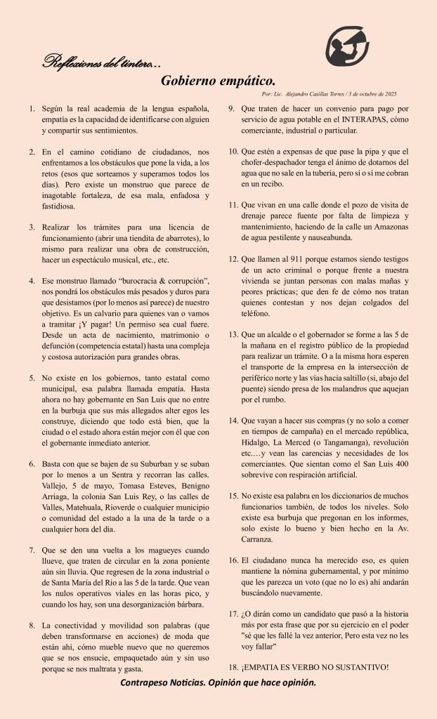 Por: Lic.  Alejandro Casillas Torres / 3 de octubre de 2025