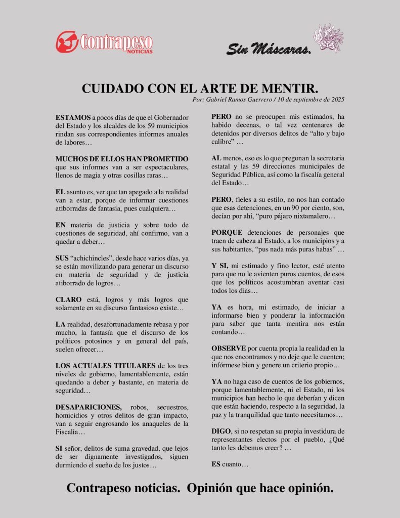 ESTAMOS a pocos días de que el Gobernador del Estado y los alcaldes de los 59 municipios rindan sus correspondientes informes anuales de labores…