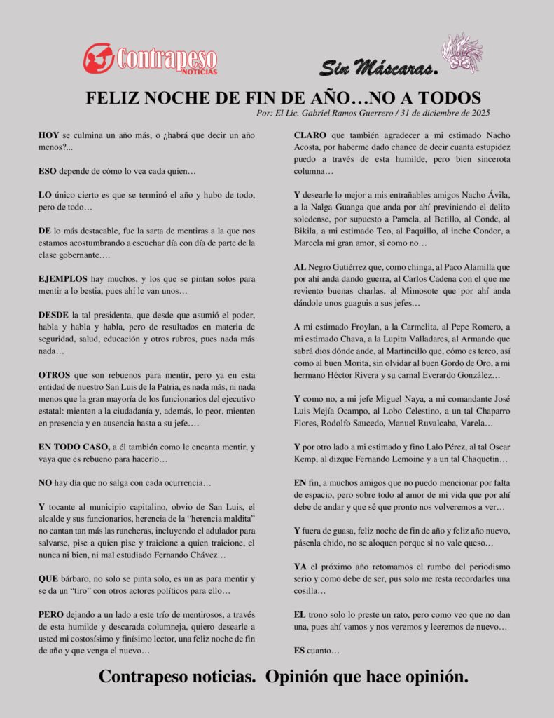 Por: El Lic. Gabriel Ramos Guerrero / 31 de diciembre de 2025