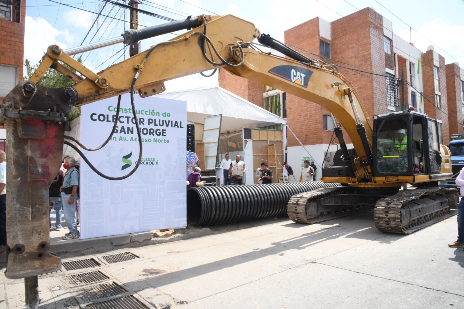 • Se dijeron beneficiados directos del inicio de la construcción del colector pluvial del fraccionamiento San Jorge, que acabará con un problema de inundación de hace años