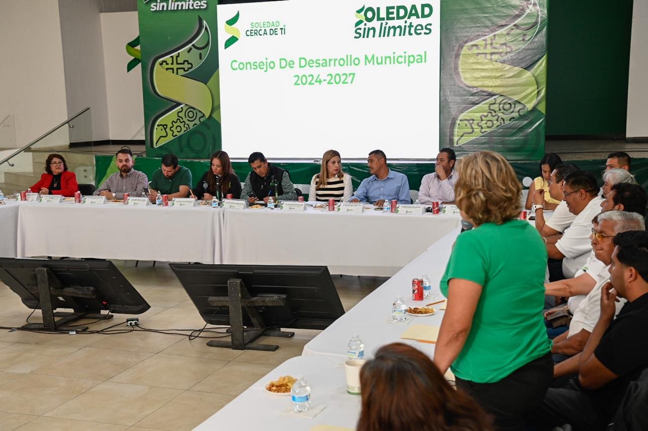 Con el impulso y cercanía del Alcalde, Juan Manuel Navarro Muñiz, este jueves, el Ayuntamiento de Soledad de Graciano Sánchez llevó a cabo sesión ordinaria del Consejo de Desarrollo Social Municipal, en el que se avalaron nuevos proyectos de infraestructura urbana, en el que destacan Parques Urbanos, proyectos de iluminación, pavimentación y reposición de sistemas de drenajes en diversos sectores, proyectos que reflejan un plan de trabajo permanente y apegado a las necesidades prioritarias de las familias.