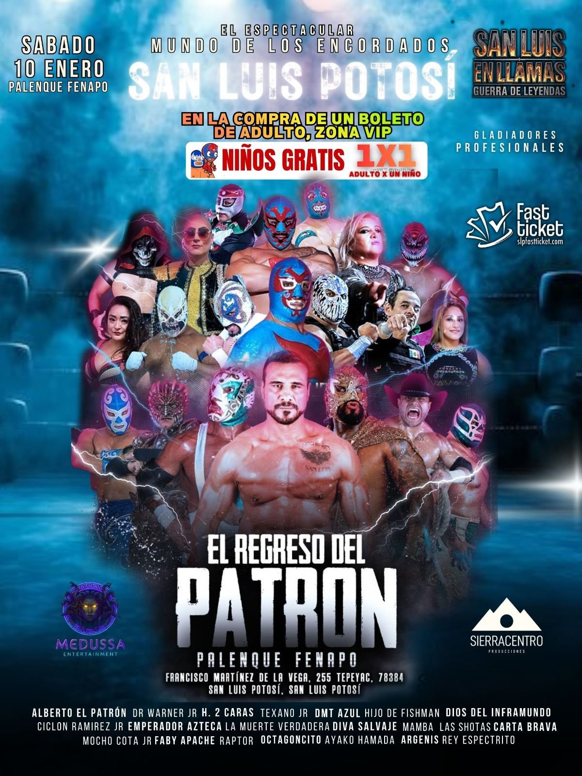 Por instrucciones del Gobernador del Estado Ricardo Gallardo Cardona, se da vida permanente al recinto ferial y se posiciona a San Luis Potosí como referente del entretenimiento a nivel nacional, iniciando el 10 de enero con el regreso de la lucha libre al Palenque con Guerra de Leyendas, encabezada por Alberto El Patrón, Hijo de Dos Caras y Dr. Wagner Jr. Mientras que el 14 de enero la función del CMLL, destacando una lucha estelar por el campeonato mundial semicompleto con Místico y Kemonito frente a Soberano Jr. y Kemalito.