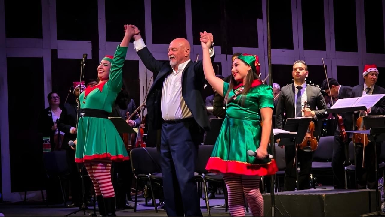 La Orquesta Sinfónica de San Luis Potosí presentó el concierto navideño en el Teatro de la Paz, bajo la dirección de Enrique Barrios, como parte de las actividades culturales que preparo el Gobierno del Estado, encabezado por Ricardo Gallardo Cardona, a través de la Secretaría de Cultura (Secult) para que las familias potosinas y visitantes disfruten sin límites.