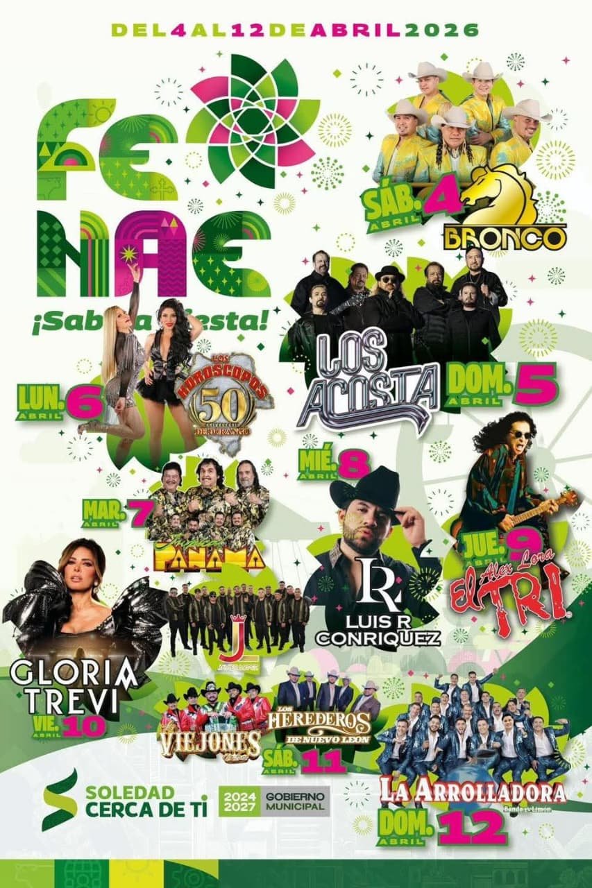 Faltan 4 días para el gran comienzo de la máxima fiesta soledense, y el Teatro del Pueblo promete ser uno de los más espectaculares de toda la Feria Nacional de la Enchilada (FENAE) 2026, con un elenco de primer nivel musical.
