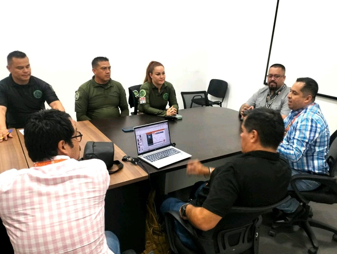La reunión fue encabezada por el Director General de la corporación municipal, comisario Víctor Aristarco Serna Piña, acompañado por el Director de Fuerzas Municipales, comandante Ulises López Rendón, y la titular del C3, comandante Selene Saldierna González, quienes reiteraron el compromiso de la corporación con fortalecer la coordinación permanente con el sector privado.