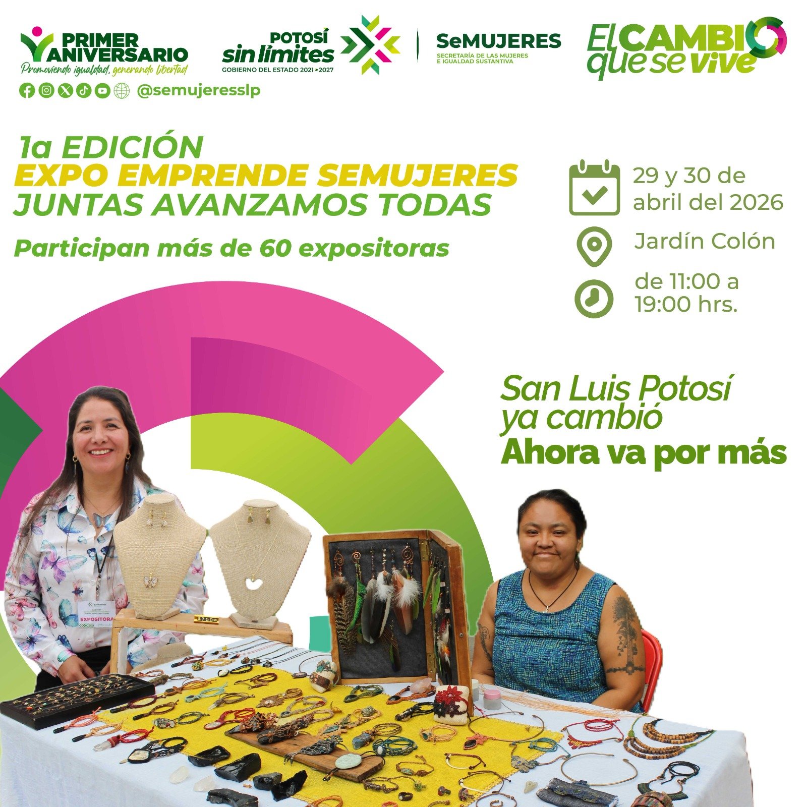 Bajo la encomienda del Gobernador Ricardo Gallardo Cardona de fortalecer el desarrollo económico y el empoderamiento de las mujeres potosinas, la Secretaría de las Mujeres e Igualdad Sustantiva (Semujeres) realizará la primera edición de la Expo Emprende Semujeres, Juntas Avanzamos Todas, un espacio diseñado para impulsar el cambio que se vive y se siente mediante la autonomía económica de las mujeres.
