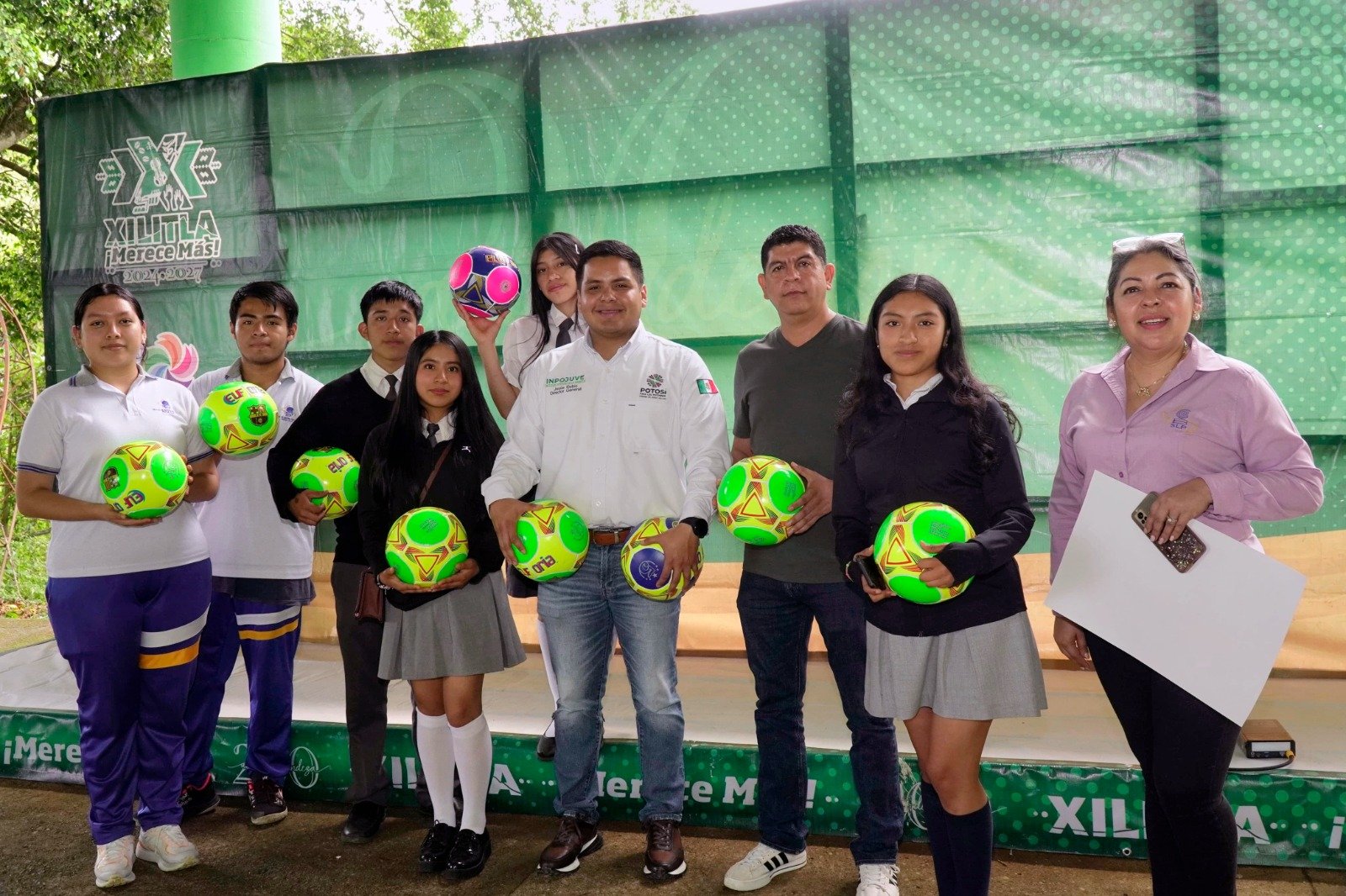 El Inpojuve, entregó material deportivo y difundió la convocatoria del Consejo Juvenil de Evaluación y Participación en escuelas de la Huasteca
