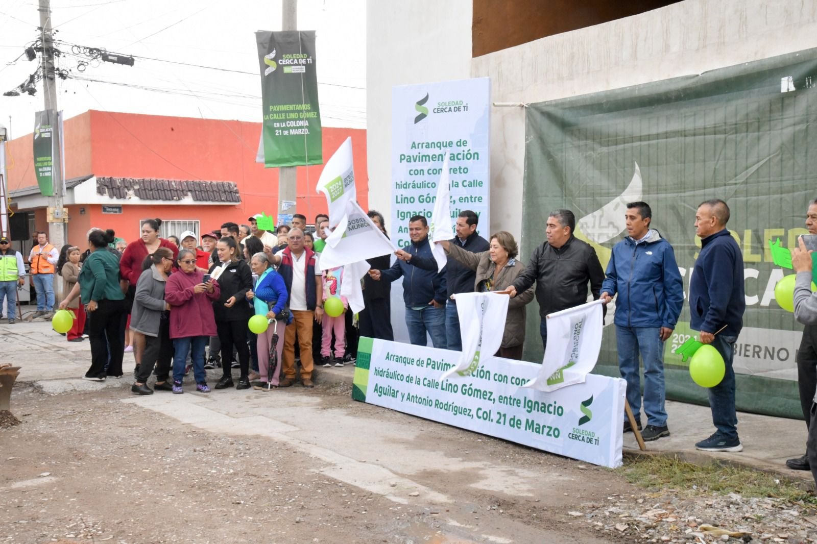 Juan Manuel Navarro Muñiz, Alcalde de Soledad de Graciano Sánchez, dio arranque a la pavimentación con concreto hidráulico de la calle Lino Gómez, en el tramo de Antonio Rodríguez a Ignacia Aguilar, en la colonia 21 de Marzo, una de las zonas limítrofes con la capital potosina que por años permaneció en el abandono y que hoy su administración atiende gracias a la coordinación con el Gobierno del Estado, con una inversión de más de 2 millones de pesos, provenientes del Fondo de Fortalecimiento Municipal, la obra beneficiará de manera directa e indirecta casi 3 mil habitantes, marcando un paso más en la transformación de Soledad.