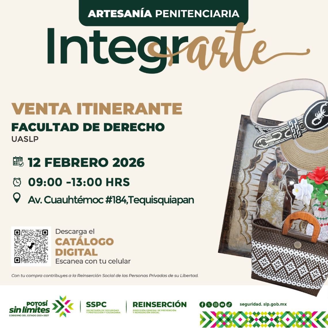 La #SSPCE, a través de la #DGPRS , te invita a conocer y adquirir piezas únicas elaboradas por personas privadas de la libertad. Con tu compra, contribuyes directamente a su reintegración social y desarrollo personal.
