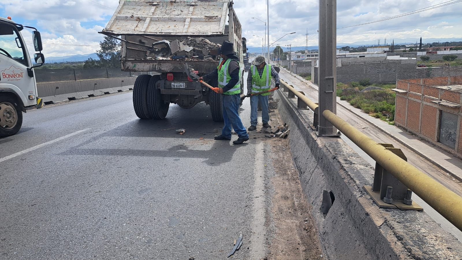 • Las cuadrillas de la JEC ejecutan acciones de bacheo, retiro de maleza, limpieza de basura, escombro y tierra en carriles centrales y laterales.