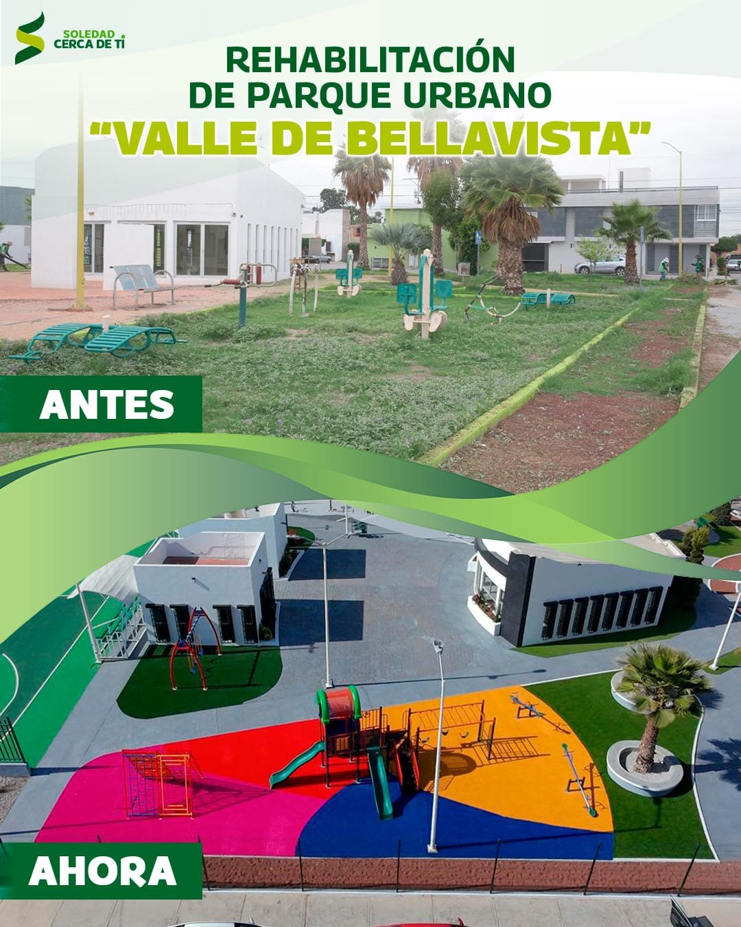 Un cambio totalmente transformador quedó marcado en el fraccionamiento Valle de Bellavista, con la construcción de un nuevo Parque Urbano por parte del Ayuntamiento de Soledad de Graciano Sánchez.