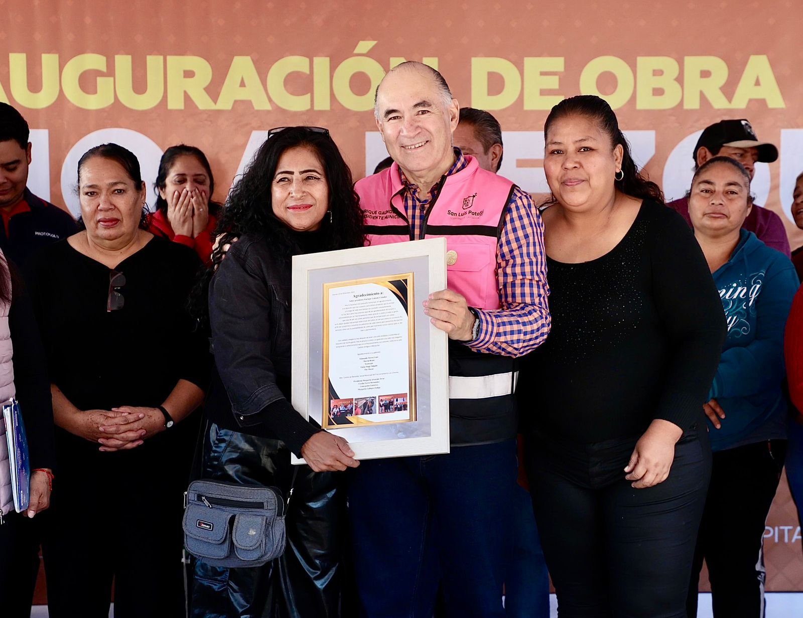 • El alcalde Enrique Galindo entrega pavimentada y con servicios la calle Camino a Mezquital, que cambiará su manera de vivir y convivir.