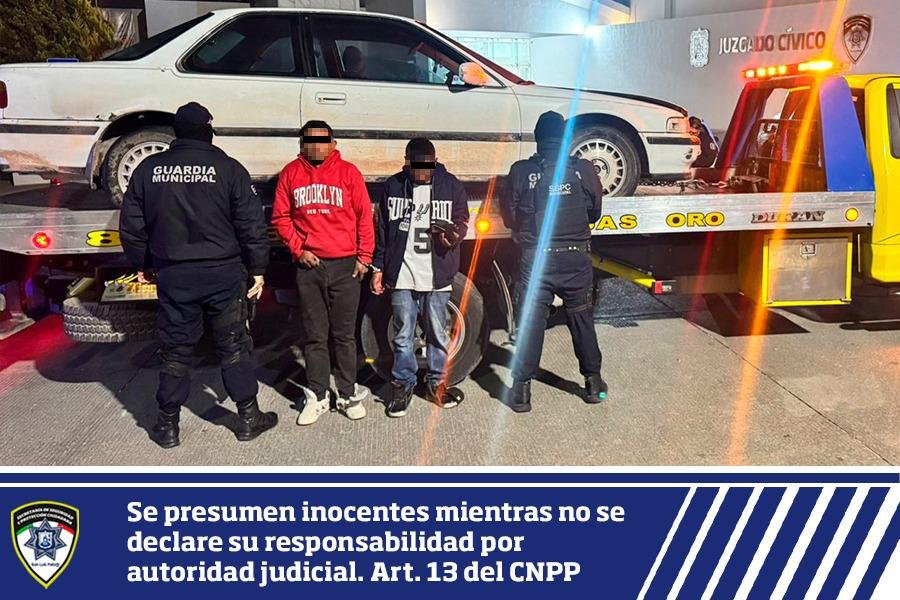 Oficiales de Guardia Municipal recuperan un vehículo robado y detiene a 2 hombres que lo conducían