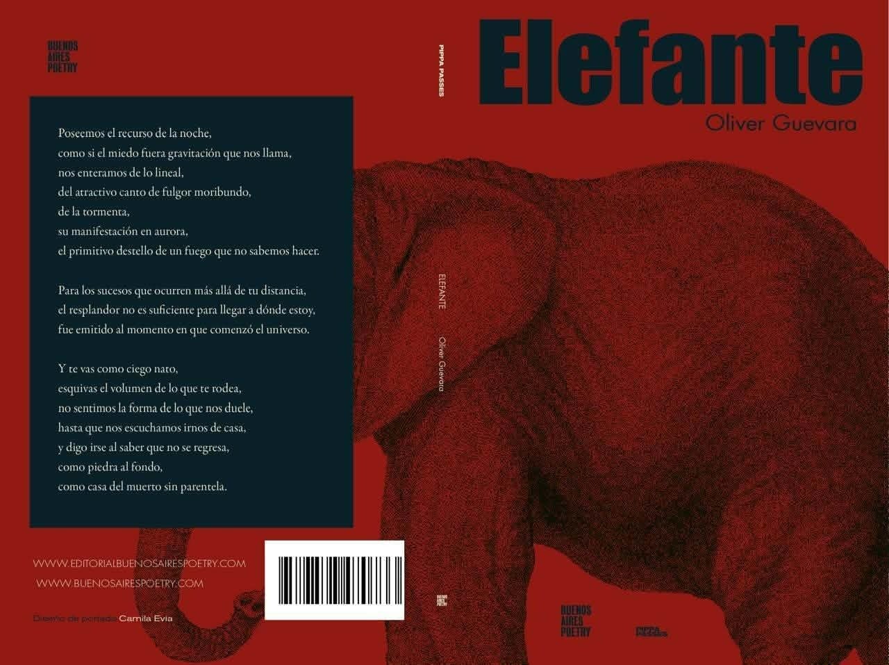 La Secretaría de Cultura de Gobierno del Estado invita al público en general a la presentación del libro “Elefante”, publicado en 2025 bajo el sello Buenos Aires Poetry, del periodista, poeta y narrador Oliver Guevara, que se llevará a cabo este viernes 16 de enero a las 17:30 horas en la biblioteca del Centro de las Artes de San Luis Potosí, con entrada libre.