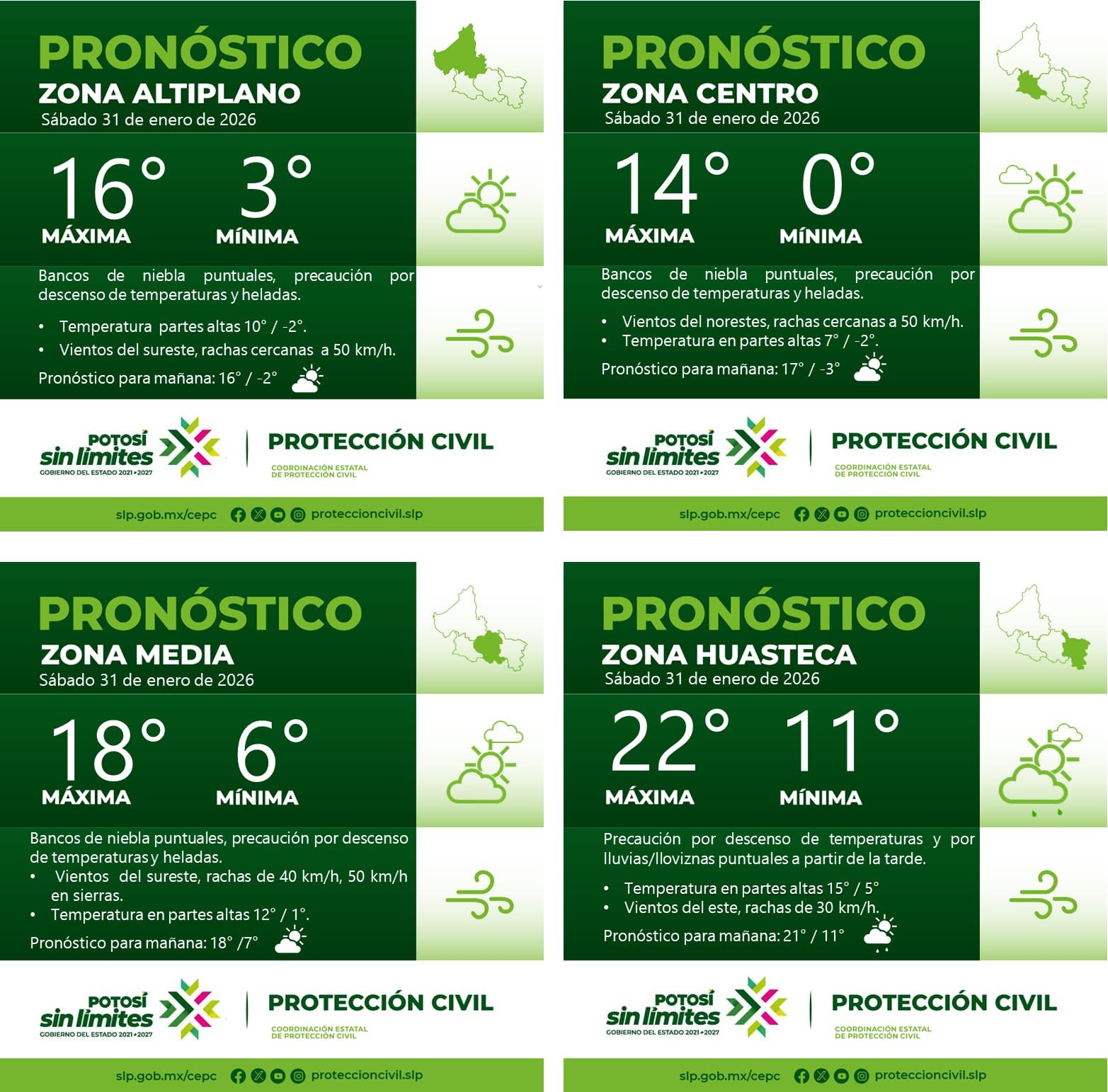 Frente frío 32 y masa de aire artica que le impulsa, ocasiona nuevo descenso de temperatura y potencial de heladas, principalmente por la noche del sábado y mañana del domingo, en zona centro, media y altiplano.
