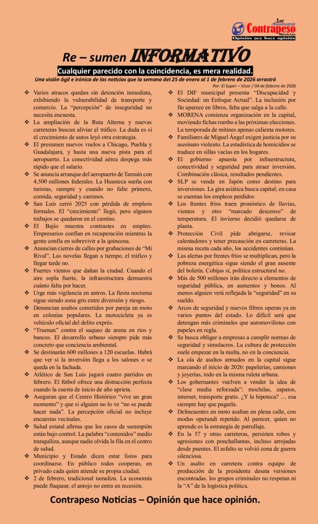 Una visión ágil e irónica de las noticias que la semana del 25 de enero al 1 de febrero de 2026 arrastró