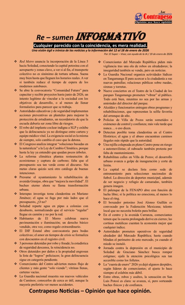 Una visión ágil e irónica de las noticias y la información del 12 al 18 de enero de 2026