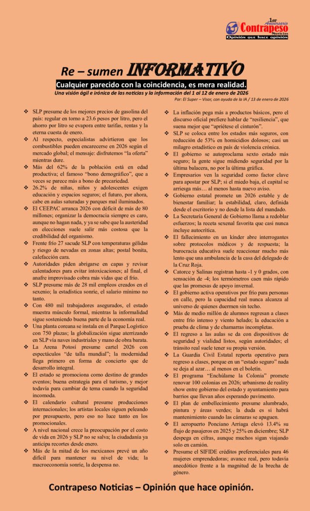 Una visión ágil e irónica de las noticias y la información del 1 al 12 de enero de 2026