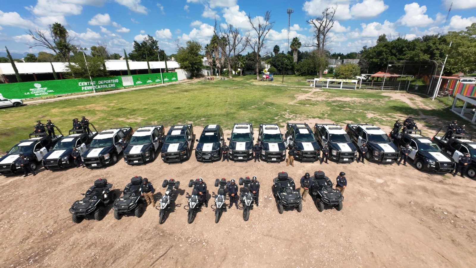 El Gobernador potosino entregó para ampliar la vigilancia y el trabajo policial: dos patrullas blindadas Ford F-250, dos Ford F-150 4×4, cuatro cuatrimotos Can-Am y cuatro motocicletas Suzuki Vstrom, fortaleciendo la capacidad de respuesta de las corporaciones de seguridad, al recordar la inversión de más de 600 millones de pesos este año que permitieron la llega de una nueva aeronave, más de 160 unidades policiales y de emergencia, así como equipamiento de última generación.