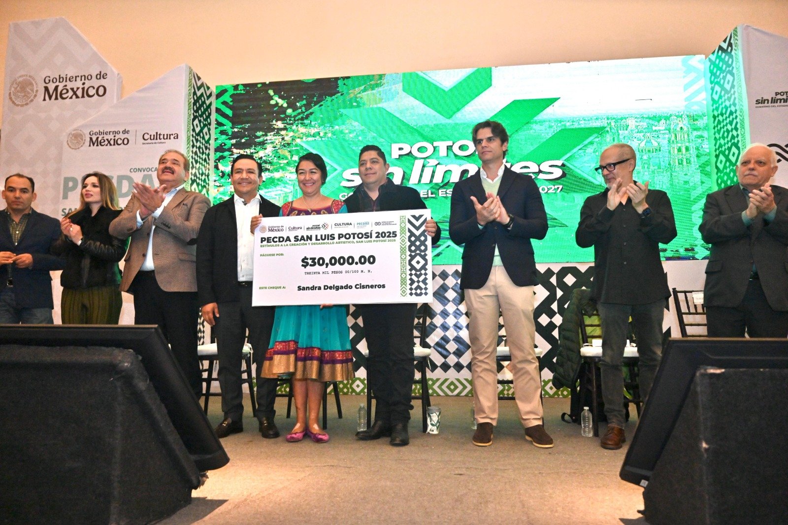 Al entregar los estímulos económicos y reconocimientos del Programa de Estímulos a la Creación y Desarrollo Artístico (PECDA) 2025, que este año aumentó el número de beneficiarios a 67 artistas con una inversión conjunta de 4 millones 150 mil pesos, el Gobernador de San Luis Potosí Ricardo Gallardo Cardona refrendó el compromiso de fortalecer el desarrollo artístico y cultural en el Estado.