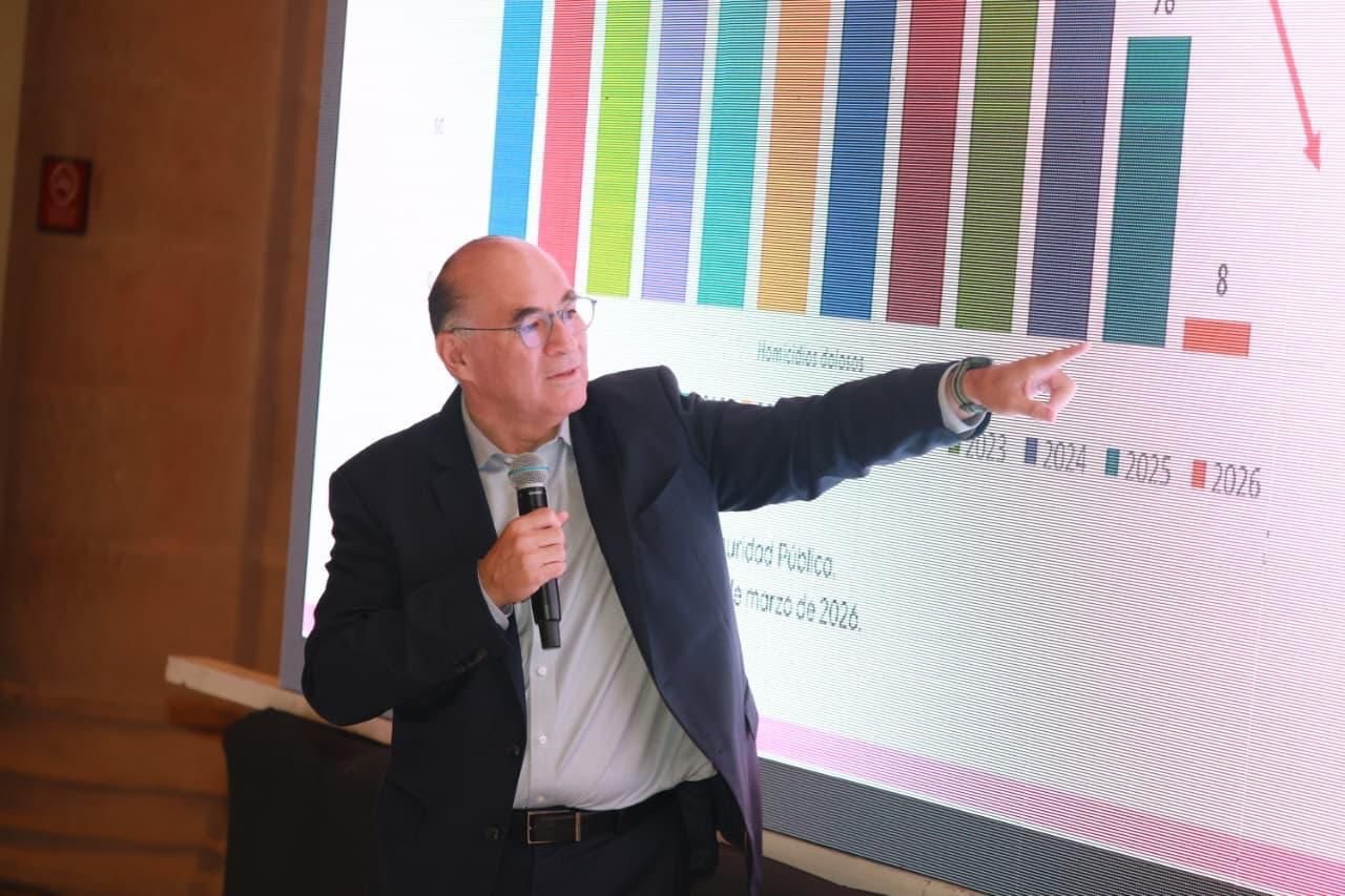 También se reportó una reducción en homicidios, con 8 casos registrados en el primer trimestre de 2026, lo que representa una baja de 72% respecto al mismo periodo del año anterior, además de caídas importantes en distintos tipos de robo: de vehículo (20.6%), con violencia (66%), a negocio (46%), a casa habitación (43.4%) y a transeúnte (5.3%).