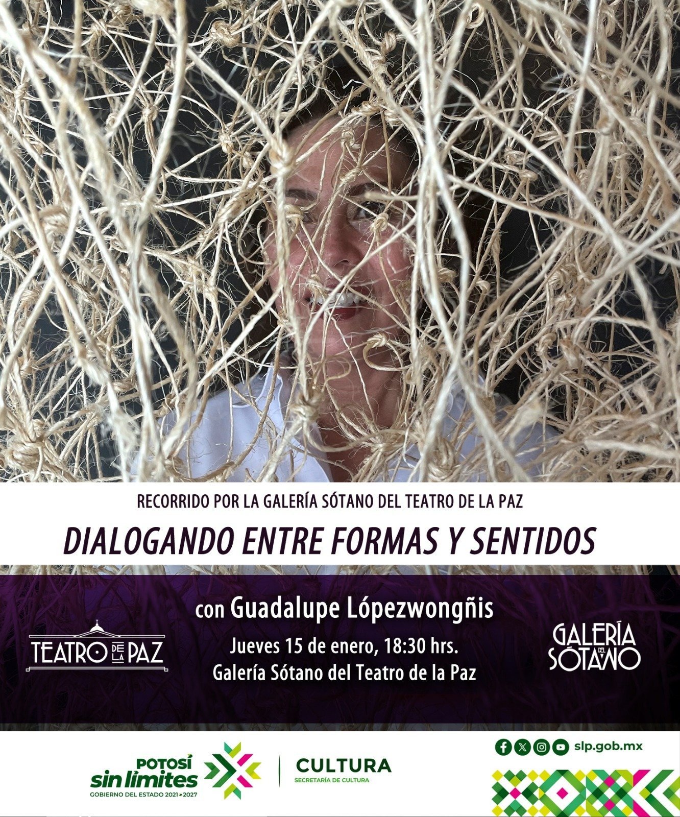 El recorrido por la Galería Sótano del Teatro de la Paz “Dialogando entre formas y sentidos” se llevará a cabo el jueves 15 de enero a las 18:30 h, con entrada libre y será para disfrutar la exposición “Coexistencias, diálogos entre materia, memoria y mirada”, de la artista Guadalupe Lópezwongñis, una muestra que propone una reflexión visual y conceptual en torno a la relación entre los materiales, la memoria colectiva y la percepción del espectador.