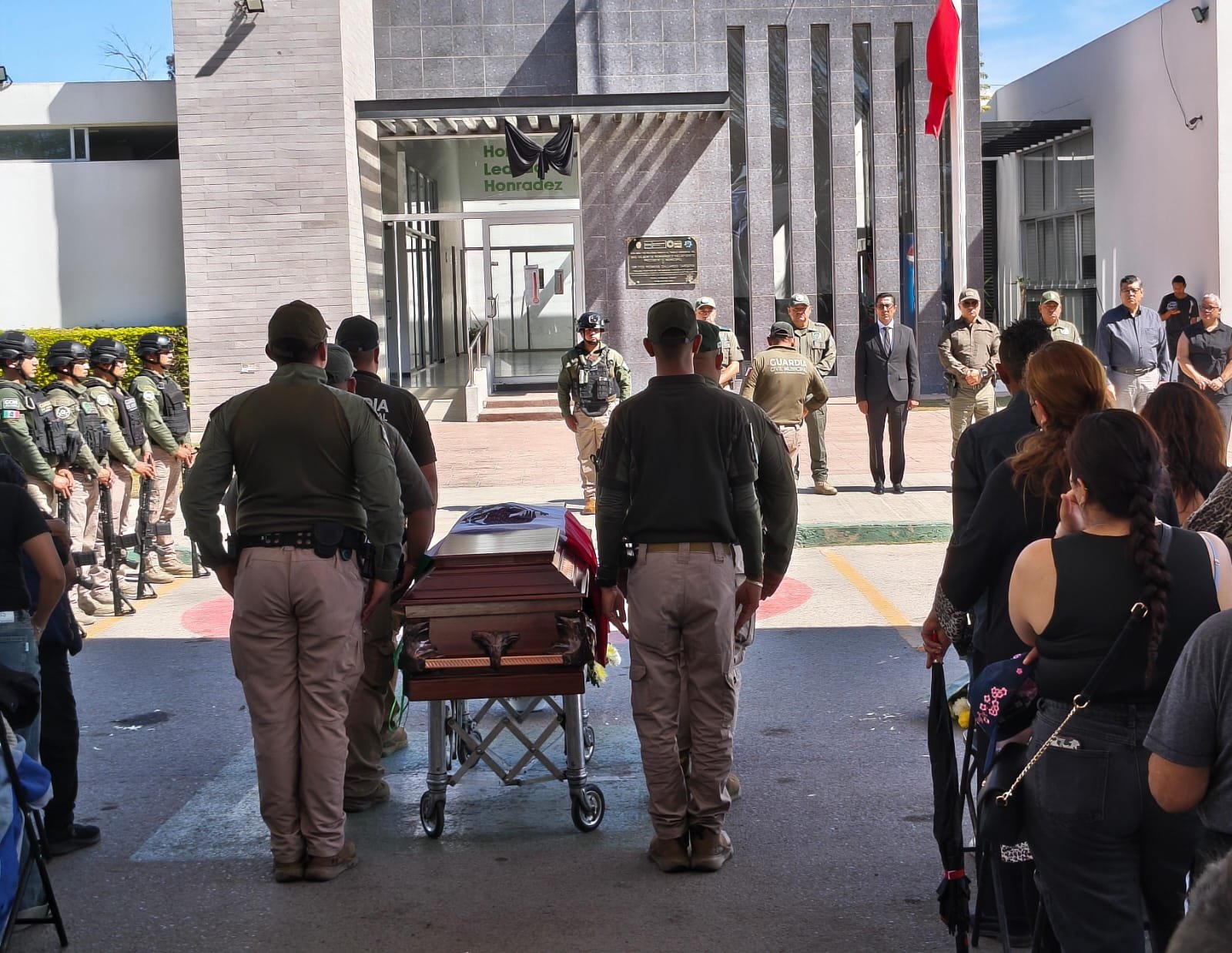 El homenaje incluyó el pase de lista, el toque de silencio a cargo de la Banda de Guerra del Estado y la salva de honor; participaron también el Comandante Rosalio Ramón García, titular de la Guardia Civil del Estado; Ulises López Rendón, titular de Fuerzas Municipales; Miguel Ángel Hernández Hernández, encargado de la Dirección de Seguridad Vial y Bertha Garay, Oficial Mayor del Ayuntamiento, quienes acompañaron a la familia y a la corporación durante la despedida.