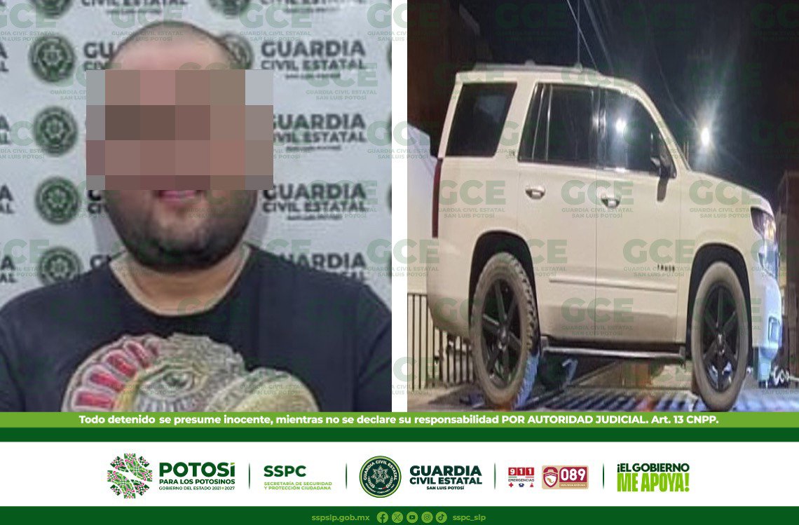 San Luis Potosí, S.L.P.- Operativos de seguridad, desplegados por la Guardia Civil Estatal, en la colonia Maya Mil, derivaron en el arresto de un presunto, señalado como probable responsable de los delitos de privación ilegal de la libertad, robo y lesiones.