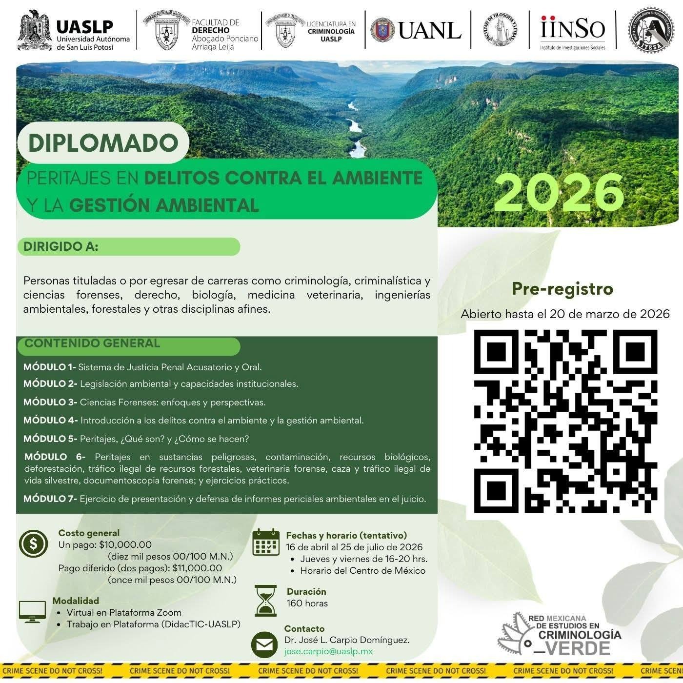El diplomado es coordinado por el doctor José Luis Carpio Domínguez, docente e investigador de la Licenciatura en Criminología, quien explicó que esta nueva edición surge a partir del interés generado en la primera convocatoria, realizada de agosto a noviembre del año pasado, cuando el cupo se llenó y quedaron personas en lista de espera. De acuerdo con el académico, la alta demanda confirmó que existe una necesidad real de formación especializada en peritajes ambientales, especialmente ante el fortalecimiento de las legislaciones en esta materia.