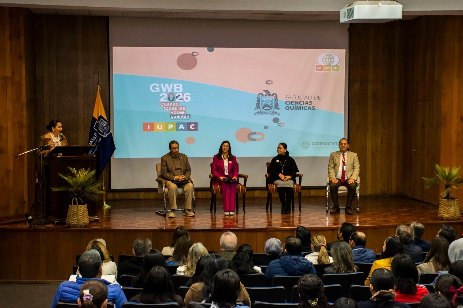 Por su parte, el doctor Alejandro Javier Zermeño Guerra, rector de la UASLP, destacó que esta es la quinta ocasión consecutiva en que la Facultad de Ciencias Químicas participa en esta iniciativa internacional. En su mensaje, enfatizó que la igualdad debe entenderse como un ejercicio de suma y colaboración, y que la ciencia se construye de manera colectiva. Asimismo, subrayó que el desarrollo científico no se limita a las ciencias exactas, sino que integra también a las humanidades y las ciencias sociales.